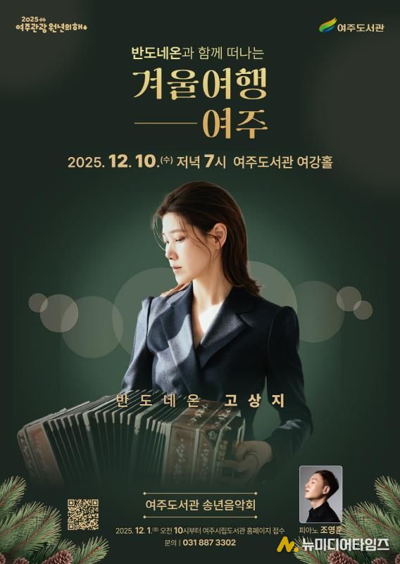 여주시 평생교육과 여주도서관은 오는 12월 10일 오후 7시, 여강홀에서 반도네오니스트 고상지와 피아니스트 조영훈이 함께하는 송년음악회를 개최한다.