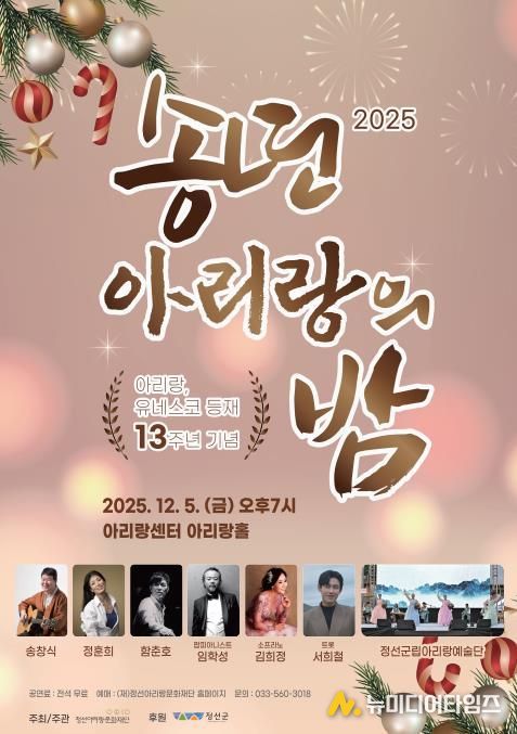 군은 이번 행사를 통해 아리랑의 국제적 위상과 지역 문화의 정체성을 재조명하고, 군민과 함께 따뜻한 연말 분위기를 나누는 의미 있는 시간이 될 것으로 기대하고 있다.
