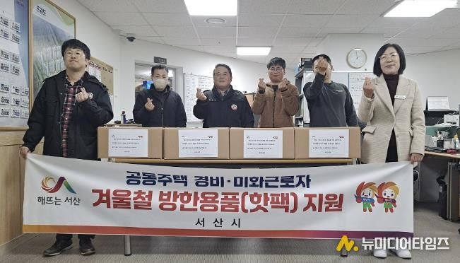 충남 서산시는 관내 공동주택 80개소에서 근무하는 경비·미화 근로자 600여 명에게 핫팩 1만 2천여 개를 지원했다고 밝혔다.