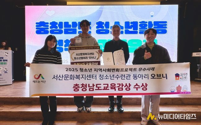 서산문화복지센터는 지난 3일 신라스테이 천안에서 열린 충청남도 청소년 활동 정책 성과공유회에서 청소년 제과제빵 동아리 ‘오브니’가 2025년 청소년 지역사회 변화 프로젝트 우수사례로 선정되어 충청남도교육감상을 수상했다고 밝혔다.