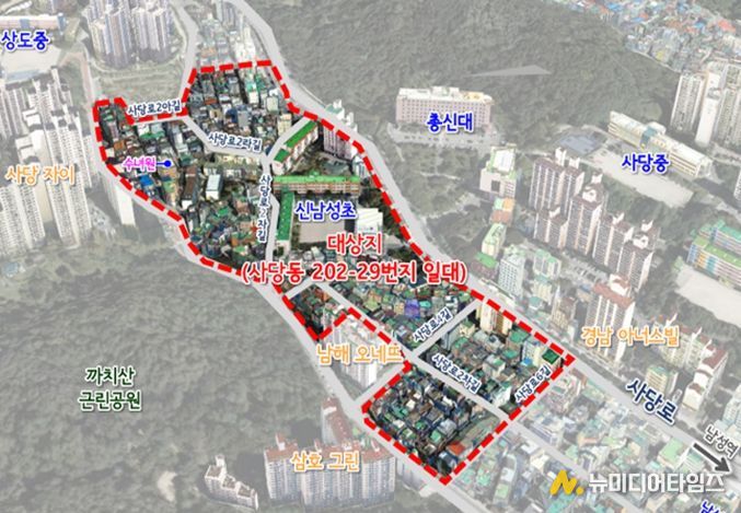이 지역은 반경 500m이내 7호선 남성역이 인접해 교통이 양호하고 신남성초등학교, 상도중학교가 바로 옆에 위치해 교육 환경이 우수한 편이다. 사당동 202-29번지 일대 모아타운 관리계획 지정에 따라 주택 공급이 확대되며 주민들의 주거 안정에 기여하고 편리하고 안전한 주거환경으로대폭 개선될 것으로 기대된다.