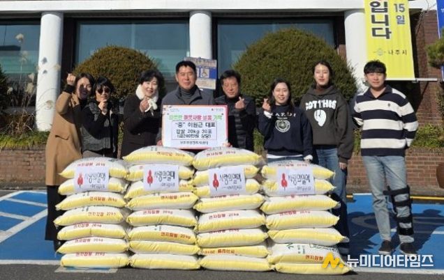 전남 나주시 산포면은 5일 ㈜대풍 이원근 대표가 관내 경로당과 어려운 이웃에게 해찹쌀(20kg) 30포를 기탁했다고 밝혔다.