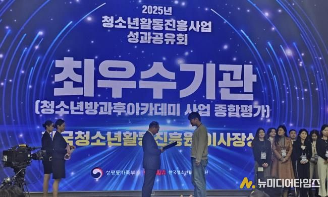 (재)연천군청소년육성재단(청소년수련관) 늘다솜 청소년방과후아카데미는 지난 11월 28일 성평등가족부와 한국청소년활동진흥원이 주최하는 2025년 청소년활동진흥사업 통합 성과공유회에서 최우수 기관 선정 및 한국청소년활동진흥원 이사장상을 수상했다.