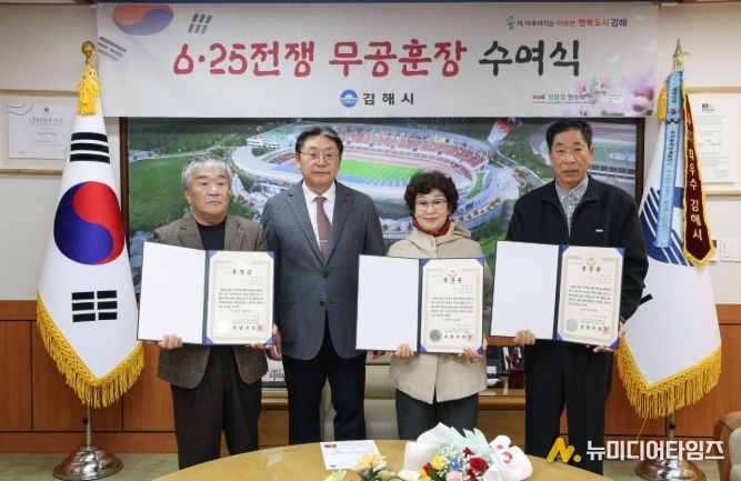 김해시는 10일, 6·25전쟁에 참전하여 혁혁한 전공을 세웠음에도 전후 혼란한 상황으로 인해 그동안 훈장을 받지 못했던 故김성수 하사, 故김동준상병, 故유경춘 상병 유족에게 국방부장관을 대신해 화랑무공훈장을 전수했다.