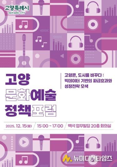 고양특례시는 오는 15일 오후 3시, 백석업무빌딩 20층 회의실에서 ‘2025 고양문화예술정책포럼’을 개최한다고 밝혔다.