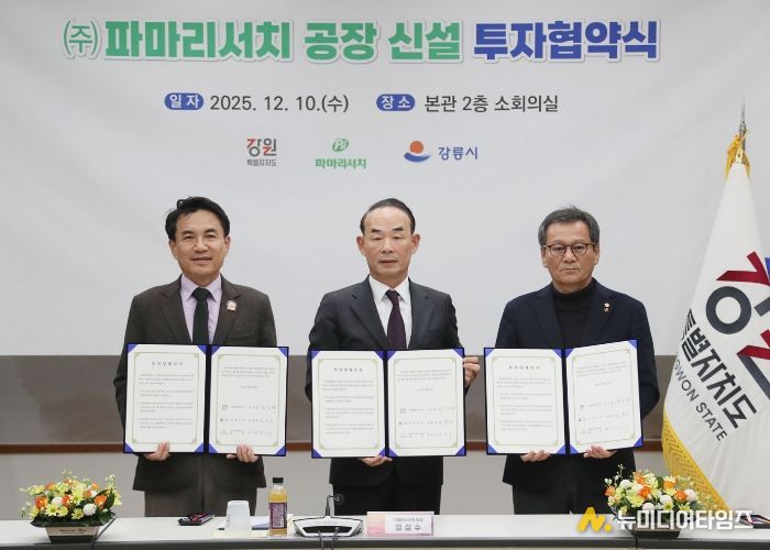 강원특별자치도는 12월 10일 도청 본관에서 강릉시 및 ㈜파마리서치와 함께 강릉 과학일반산업단지 내 제5공장 신설을 위한 투자협약(MOU)을 체결했다.