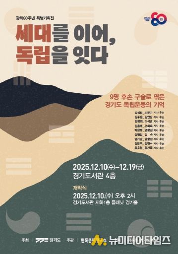 경기도가 광복 80주년을 맞아 10일부터 19일까지 경기도서관 4층에서 독립운동가와 그 후손들의 삶을 통해 독립정신을 되새기는 사료전시회 ‘세대를 이어, 독립을 잇다’를 연다.