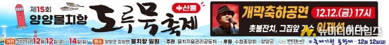 물치항 어촌계 관계자는 “도루묵 축제에서는 다양한 도루묵 요리와 함께 공연 및 체험 프로그램을 즐기며 추운 겨울도 따뜻하게 보낼 수 있을 것”이라며 “많은 분들이 방문하셔서 신선한 도루묵의 맛과 함께 양양 겨울 바다만의 정취를 느껴보시길 바란다”고 전했다.
