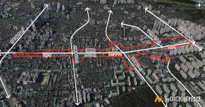 서울 강동구가 서울 동부권 중심도시로서 도약하는 가운데, 지하철 5호선 길동역·굽은다리역·명일역 3개 역세권 일대의 양재대로 중심축 육성을 위한 지구단위계획 행정절차를 모두 마쳤다고 밝혔다.