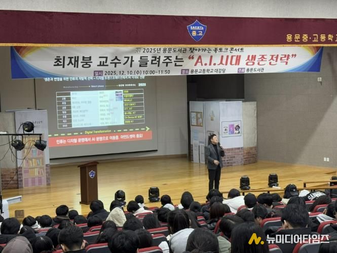 이날 강연에는 용문고등학교 학생 400여 명이 참여해 디지털 대전환 시대를 살아갈 청소년들의 미래 역량을 키우는 기회를 가졌다.