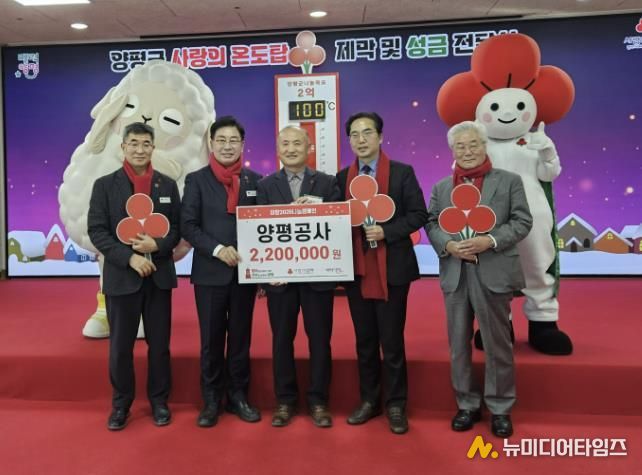 양평공사는 모금 활동 종료 후, 11일 오후 2시부터 4시까지 양평군청 별관 4층 대회의실에서 열린 ‘희망 2026 사랑의 온도탑 제막식 및 성금 전달식’에서 이성희 경영기획실장이 기탁 성금을 전달했다고 전했다.