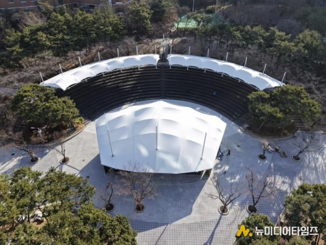 정비를 통해 기존 노후 무대는 디자인 가벽과 막구조 지붕 형태로 새롭게 조성돼 공연 시 발생하는 소음을 완화할 것으로 기대된다. 객석에는 그늘막을 설치하고, 앉음 덱과 수국 식재를 추가해 관람객이 쾌적하게 머물 수 있는 환경을 마련했다.