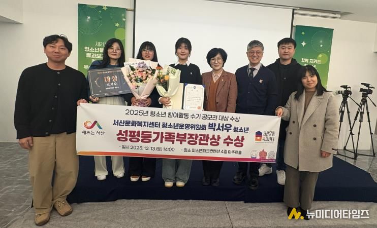 서산문화복지센터 청소년수련관은 지난 13일 피스앤파크 컨벤션에서 열린 ‘2025년 청소년 참여활동 우수사례 공모전 시상식’에서 청소년운영위원회 박서우(서령중2) 청소년이 성평등가족부 장관상(대상)을 수상했다고 밝혔다.