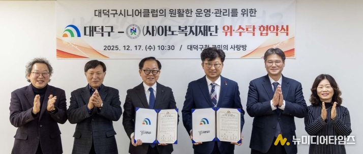 대전 대덕구는 17일 구청 구민의 사랑방에서 사단법인 아노복지재단과 대덕구 시니어클럽 위탁 운영 협약을 체결했다.