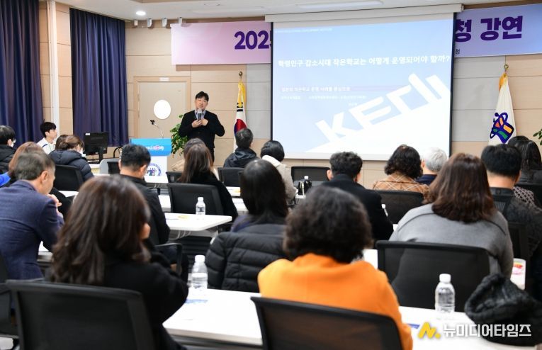 충청북도진천교육지원청은 17일 진천 관내 교장, 행정실장, 부장교사 등을 대상으로 ‘2025년 작은학교 전문가 초청 강연’을 개최했다.