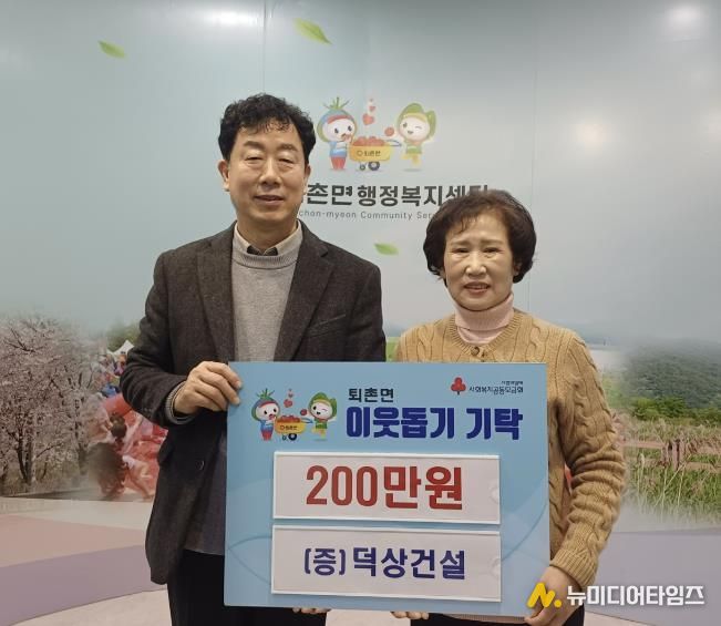 이에 대해 김성환 면장은 “매년 잊지 않고 소외된 이웃을 위해 온정의 손길을 내밀어 주신 ㈜덕상건설에 깊이 감사드린다”며 “기탁해 주신 성금은 도움이 꼭 필요한 이웃들에게 소중히 전달해 따뜻하고 행복한 퇴촌면을 만드는 데 최선을 다하겠다”고 밝혔다.