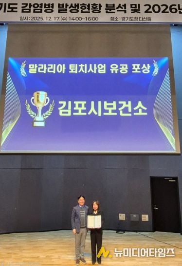 김포시보건소는 경기도가 실시한 ‘2025년 말라리아 퇴치사업 유공 평가’에서 우수기관으로 선정되며 8년 연속 수상하는 성과를 이어갔다.