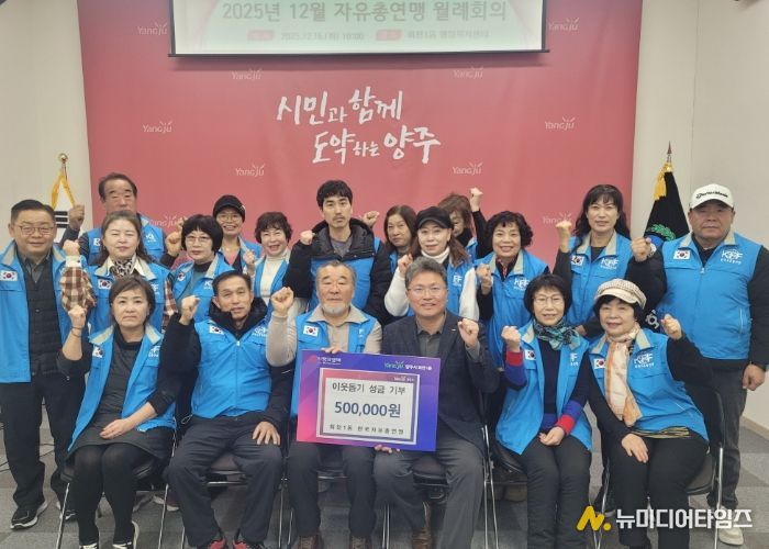 한국자유총연맹 양주시지회 회천1동 분회가 지난 16일 이웃돕기 바자회 수익금 50만 원을 회천1동 행정복지센터에 기부했다.