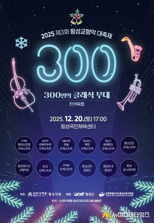 올해로 세 번째를 맞는 이번 대축제는 초등학생부터 청소년, 성인까지 세대를 아우르는 300명이 넘는 연주자와 합창단원이 함께 만드는 대규모 클래식 공연으로, 지역 예술교육의 성과와 공동체 문화의 힘을 한자리에서 보여주는 횡성의 대표적인 음악 축제다.