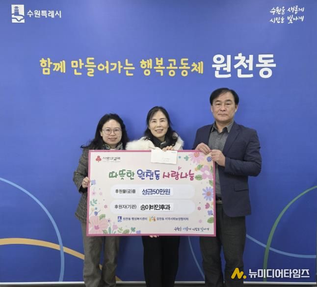 지난 18일, 원천동에 소재한 송이비인후과는 지역사회 나눔 실천의 일환으로 원천동행정복지센터에 성금 50만 원을 기부했다.