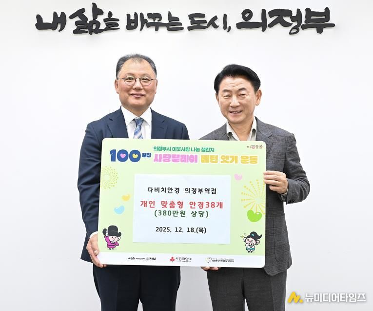 의정부시는 12월 18일 다비치안경 의정부역점이 관내 저소득층을 위해 맞춤형 안경 38개(380만 원 상당)를 기부했다고 밝혔다.
