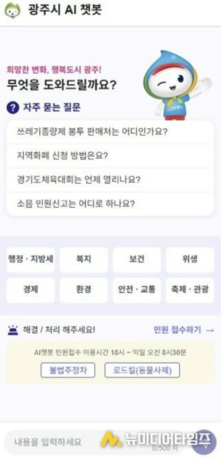 광주시는 생성형 인공지능(AI) 기술을 활용한 ‘광주시 AI 행정서비스 구축’ 사업을 완료하고 AI 민원 채팅 로봇과 콜봇을 22일부터 시범 운영한다고 19일 밝혔다.