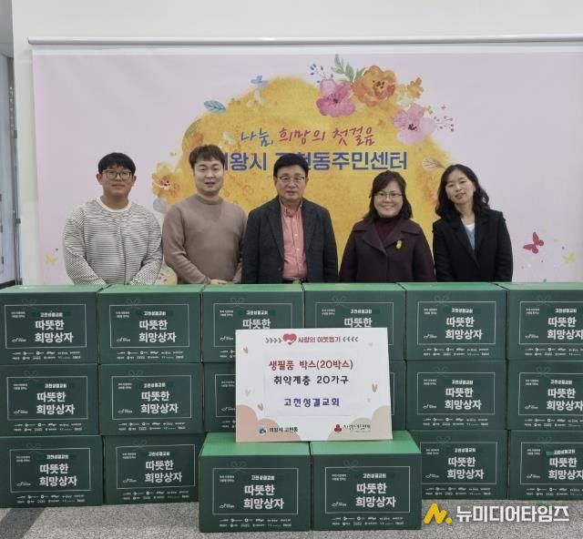 의왕시 고천성결교회가 12월 18일 의왕시 고천동주민센터를 방문해 지역사회 취약계층을 위해 사용해 달라며 연말 생필품박스 20박스를 기탁했다.