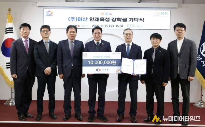 한광두 ㈜이산 사장은 “지역사회로부터 받은 사랑과 성원에 보답하고, 미래세대의 건강한 성장과 꿈을 응원하고자 장학금을 기탁하게 됐다”며, “이 장학금이 학생들에게 든든한 디딤돌이 되길 바란다”고 밝혔다.