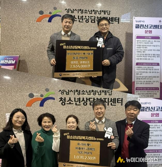 성남시청소년청년재단 성남시청소년상담복지센터는 12월 18일, 성남열린푸드뱅크마켓, 파리바게트 위례아트리버점과 물품 전달식을 진행했다고 밝혔다.