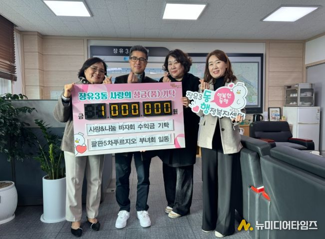 이번 성금은 지난 2025년 10월 30일 팔판마을5단지 푸르지오아파트에서 열린 ‘사랑&나눔 바자회’를 통해 마련됐다. 바자회는 의류, 생활잡화 등 중고물품 판매와 함께 먹거리 장터를 운영해 입주민들의 큰 호응을 얻었다.