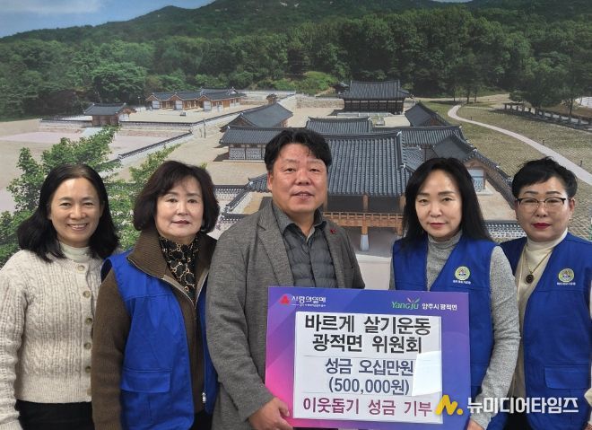 이번 성금은 바르게살기운동 광적면위원회가 ‘양주 회암사지 왕실축제’ 먹거리 판매 부스를 운영해 마련한 수익금으로 마련됐다.