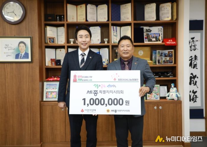 세종특별자치시의회는 19일 의장 집무실에서 세종사회복지공동모금회에 성금을 기탁하는 ‘희망 2026 나눔 캠페인’ 성금 전달 행사를 진행했다.