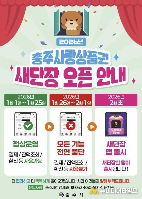 이후 데이터 전환과 정산 작업이 본격적으로 이뤄지는 1월 26일부터 2월 1일까지는 충주사랑상품권의 모든 서비스가 전면 중단된다.