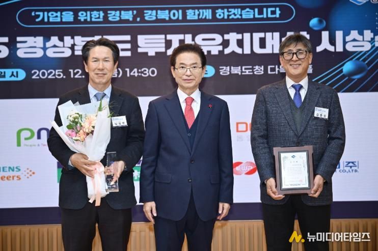 김천1일반산업단지에 입주한 ㈜디알젬(대표 박정병)과 ㈜대림프라콘(대표 김동수)이 지난 19일 경상북도청에서 열린 '2025년 경북 투자유치대상'시상식에서 우수상과 특별상을 수상했다.
