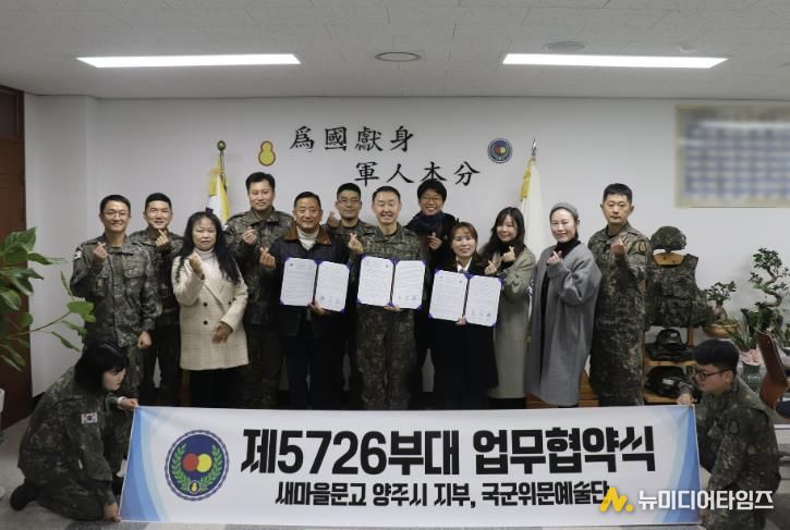 새마을문고 양주시지부는 지난 12월 19일, 육군 제5726부대에서 군 장병들의 독서문화 확산과 인문학적 소양 증진을 위한 업무협약(MOU)을 체결했다고 밝혔다.