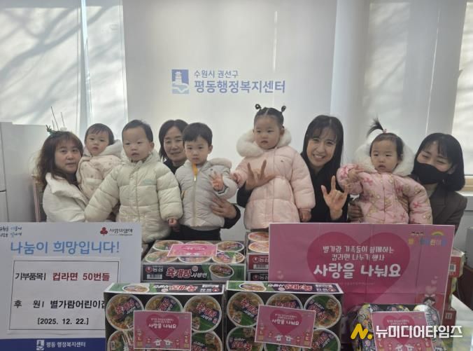 지난 22일 별가람어린이집에서는 연말연시를 맞이하여 이웃 돕기 후원 물품 컵라면 50 상자를 평동 행정복지센터에 전달했다.