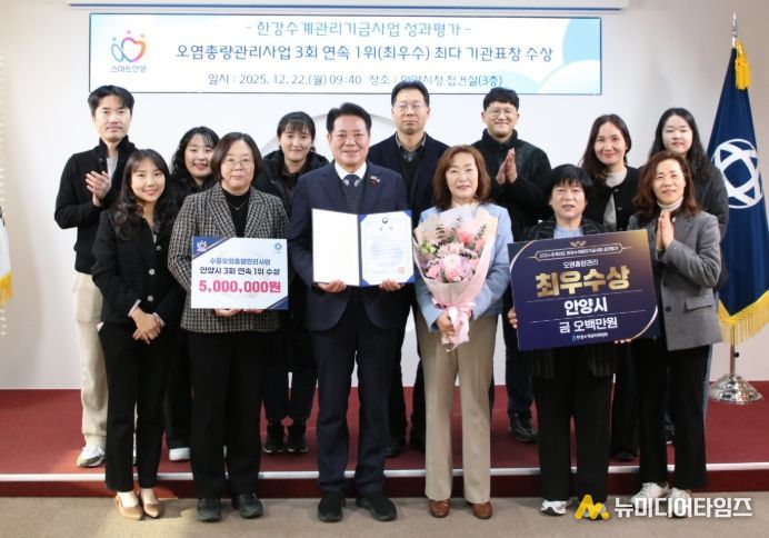 안양시는 한강유역환경청 주관 ‘2024 회계연도 한강수계관리기금사업 성과평가’에서 한강수계 관리청 34곳 중 오염총량관리사업 분야에서 3회 연속 1위(최우수)를 달성했다고 22일 밝혔다.