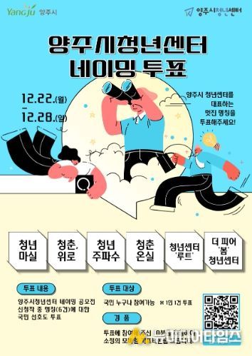 양주시 관계자는 “청년센터 이전과 확대를 계기로 청년과 시민 모두에게 친근하고 의미 있는 공간 이름이 선정될 수 있도록 많은 관심과 참여를 바란다”고 말했다.