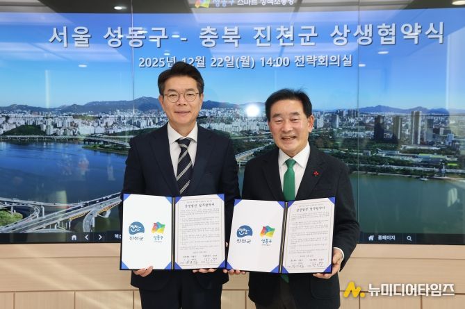 충북 진천군과 서울시 성동구는 22일 성동구청에서 상생협력 업무협약을 체결했다.