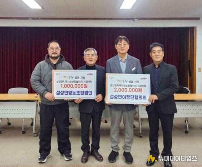 이번 성금 기탁은 설성면 이장단협의회가 200만 원, 설성영농조합법인이 100만 원을 각각 마련해 총 300만 원이 조성됐으며, 기탁된 성금은 관내 홀몸어르신과 도움이 필요한 이웃들을 위해 사용될 예정이다.