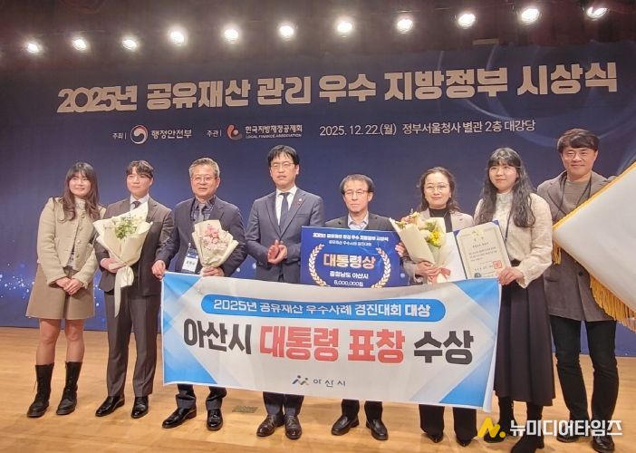 아산시는 행정안전부가 주관한 ‘2025년 공유재산 우수 지방자치단체 시상식’에서 우수사례 경진대회 부문 전국 1위에 해당하는 대통령상을 수상했다고 22일 밝혔다.