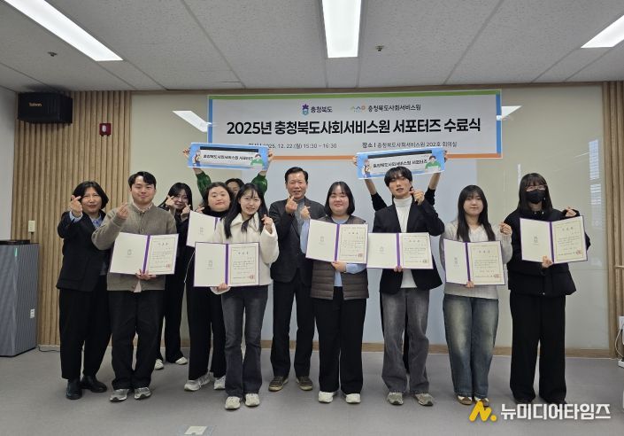 충청북도사회서비스원(이장희 원장)은 12월 22일 오후 3시 30분, 충청북도사회서비스원 회의실에서 2025년 서포터즈 수료식을 개최했다.