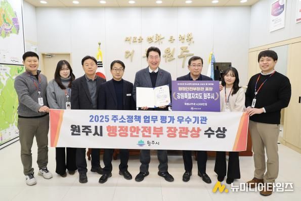 원주시는 최근 행정안전부가 주관한 ‘2025 주소정책 성과 공유 워크숍’에서 주소정책 업무 평가 우수 기관으로 선정돼, 행정안전부장관 표창을 수상하고 특별교부세 4천만 원을 확보했다.
