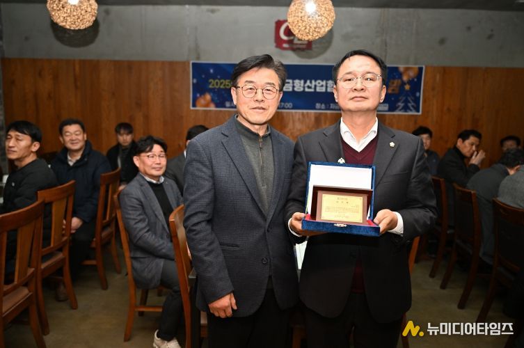 완주군의회 김재천 부의장이 지난 22일 열린 전북금형협회 송년회에서 지역 금형 산업과 제조업 발전에 기여한 공로를 인정받아 감사패를 수상했다.
