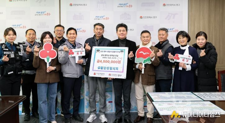 인천시 중구는 지난 18일 인천중부경찰서 영종지구대(대장 홍만기)와 생활안전협의회(회장 이근철)가 중구청을 방문해 저소득층 중학생을 위한 장학금 450만 원을 기탁했다고 밝혔다.
