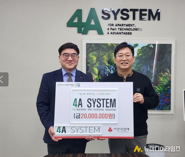 (주)포에이시스템(대표 김소중)은 지난 22일 인천서구복지재단(이사장 강범석)에 취약계층을 위한 지원사업을 위하여 2천만 원을 기탁했다.