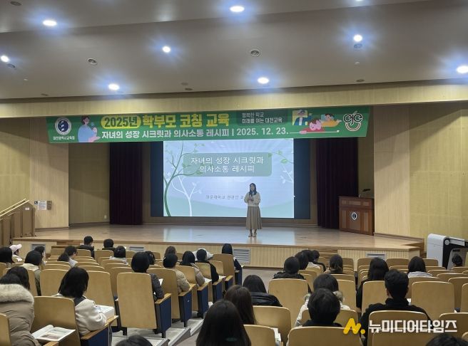 대전시교육청은 12월 23일 대전교육과학연구원 강당에서 대전지역 학부모 600명을 대상으로‘자녀의 성장 시크릿과 의사소통 레시피’라는 주제로 학부모 코칭 교육을 실시했다고 밝혔다.