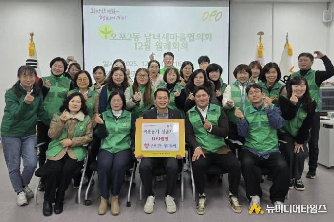 이에 대해 박종덕 동장은 “지역사회를 위해 따뜻한 나눔을 실천해 주신 오포2동 새마을회에 감사드린다”며 “기탁된 성금은 지역 내 취약계층을 위해 투명하고 소중하게 사용하겠다”고 밝혔다.