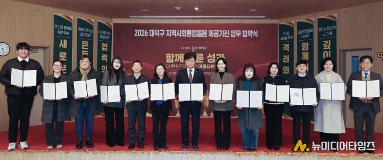 대덕구는 23일 지역 통합돌봄 서비스 제공기관 13곳과 업무협약을 체결하고, 2026년 통합돌봄사업의 안정적 운영을 위한 민·관 협력 체계를 본격 가동한다고 밝혔다.