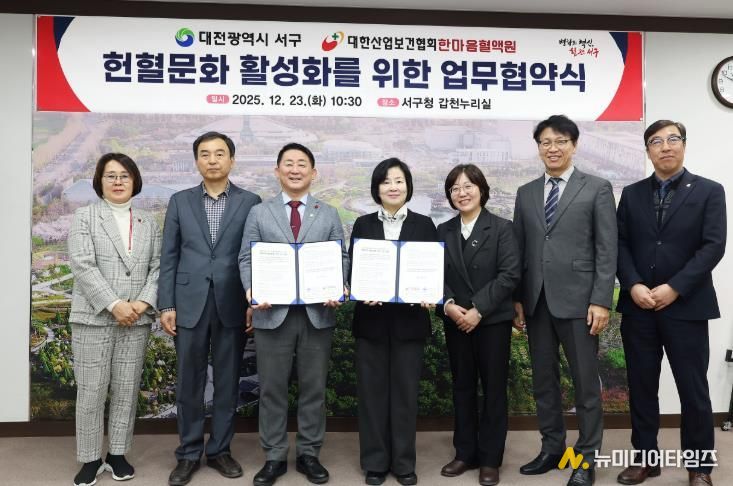 대전 서구는 23일 대한산업보건협회 한마음혈액원과 지역사회 헌혈 문화 확산과 이웃사랑 실천 분위기 조성을 위한 업무협약을 체결했다.